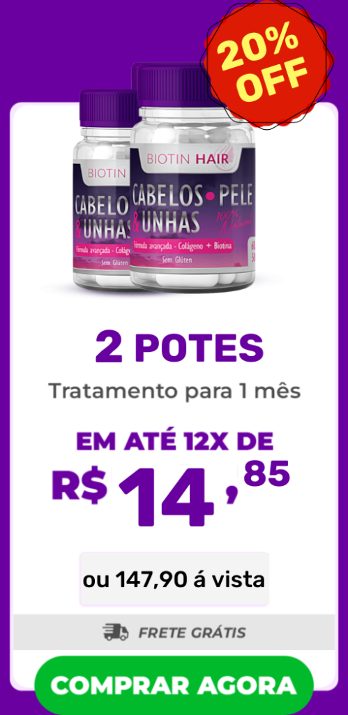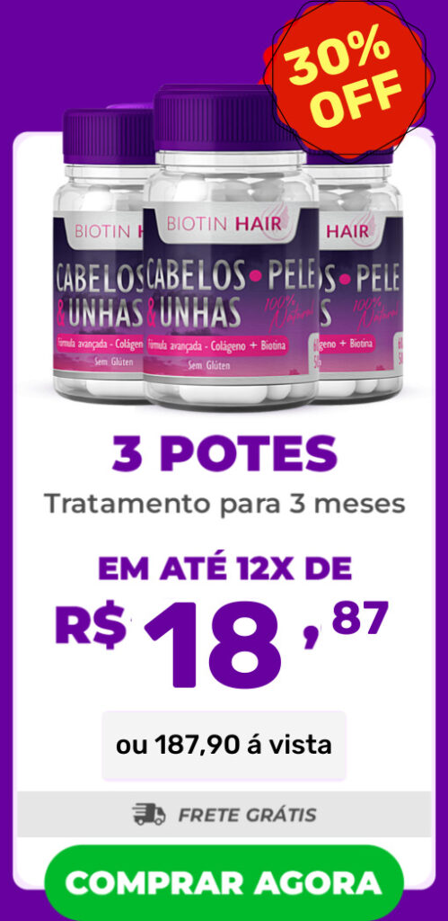 Biotin Hair nas Últimas unidades restantes com kits de até 45% desconto! Faça o pedido da sua unidade hoje com menor preço e garanta a promoção.
